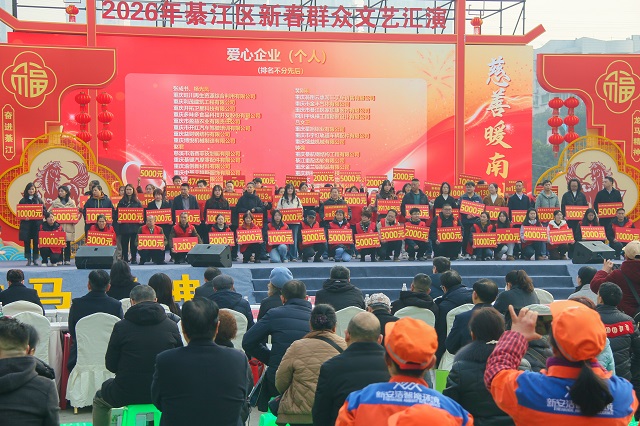 2026年2月6日,“文明扬新风·慈善暖南州”2026年綦江区新时代文明实践“南州茶谈”展演暨“慈善情暖万家”启动仪式在营盘山广场举行(注:古称“南州”)。綦江区副区长石秀章致辞,区委常委、宣传部部长任骏宣布活动启动,区慈善会会长朱川及区委宣传部、区民政局等相关领导出席,近300名各界代表到场参与。